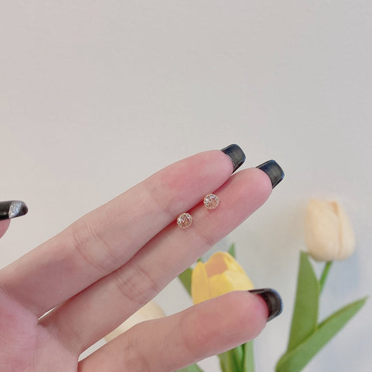 [Love's Uplift]Stylish Shiny Round Center Stone Stud Earrings