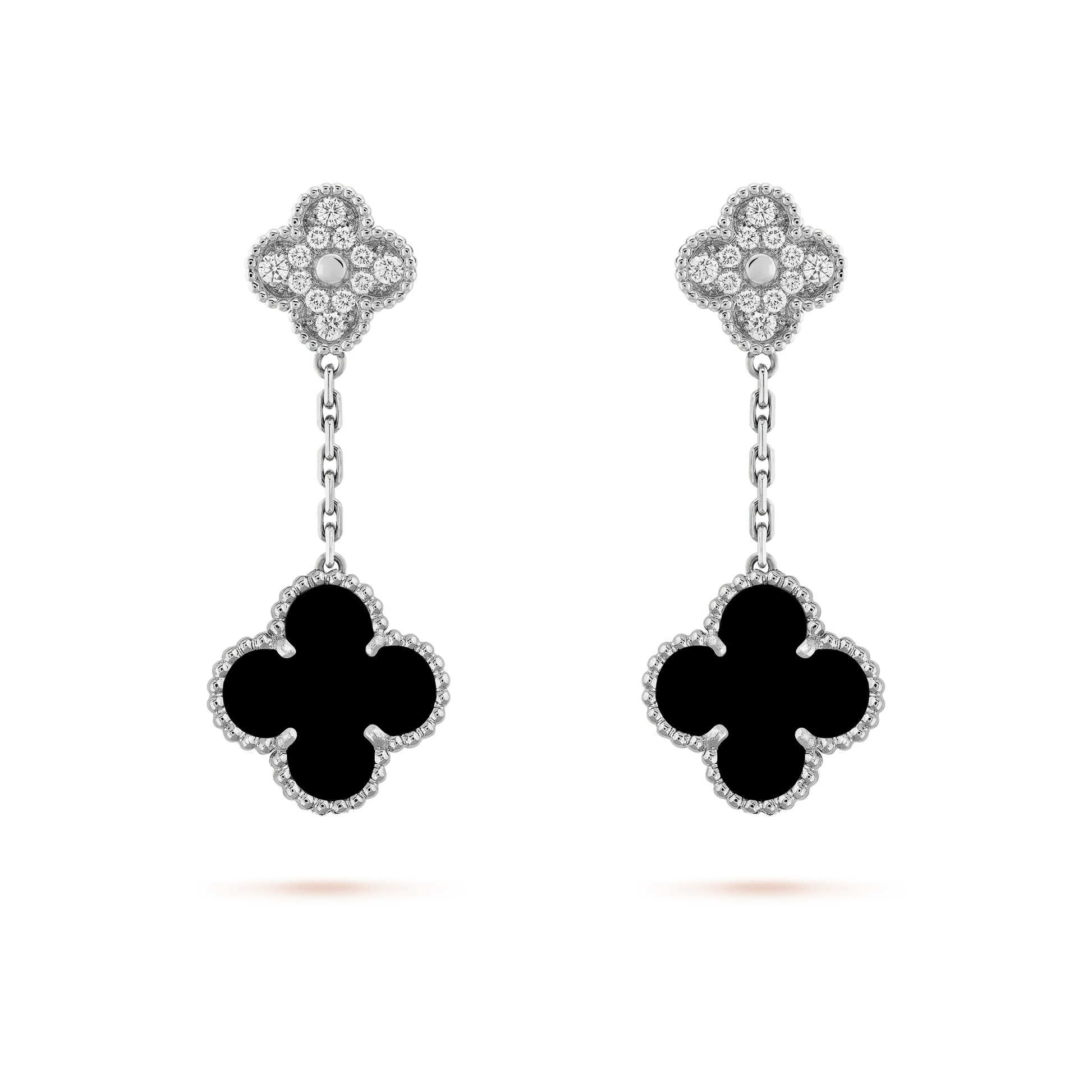 [Love's Uplift]CLOVER 2 MOTIFS DIAMOND ONYX EARRINGS SILVER