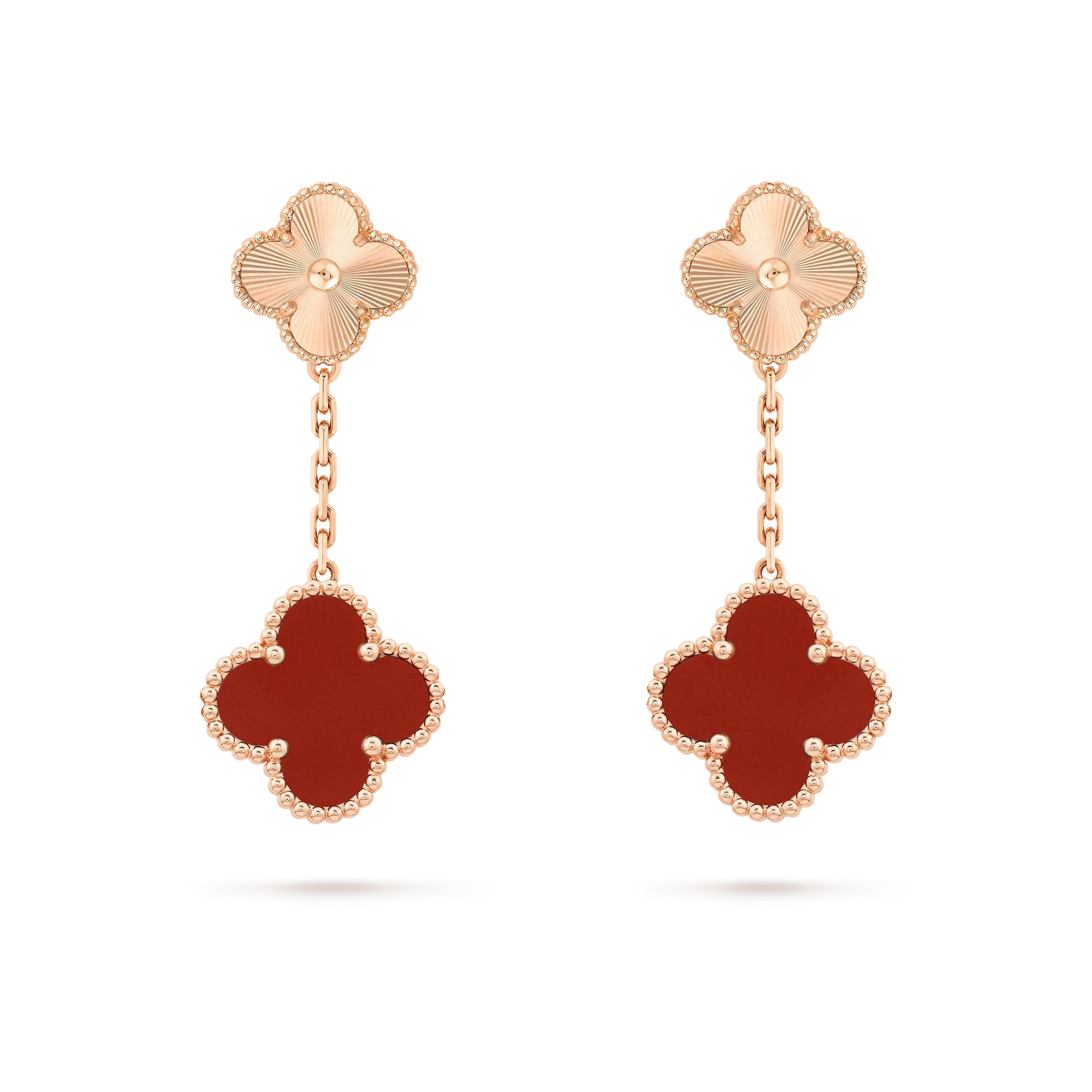 [Love's Uplift]CLOVER 2 MOTIF LASER CARNELIAN EARRINGS
